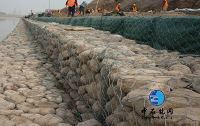雷諾護(hù)墊由機(jī)械編制而成的六邊形網(wǎng)片組合的一種構(gòu)造體,高度為40cm~100cm。可認(rèn)為單元籠體,也可為用距離網(wǎng)片分隔成的多格籠體。依照ASTM A975-97標(biāo)準(zhǔn)拼裝而成。工程現(xiàn)場填充石料拼裝構(gòu)成柔性的、透水的、全體的支擋構(gòu)造,用于生態(tài)防護(hù)工程。